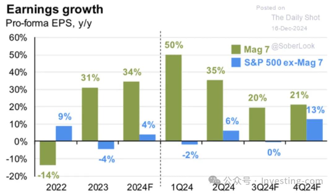 对2025年的乐不雅情愫还出现了一种意旨的转动。此前两年,增长高于平均水平的盈利文书仅来自法度普尔500指数中市值名次前7的公司。可是,分析师当今预测盈利增长将转向指数中名次后493的公司。