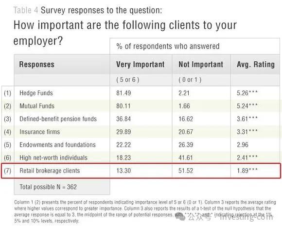 问题来了:“要是散户不是华尔街商量机构的要点,那么谁是?”底下的探望表明晰地回答了这个问题。