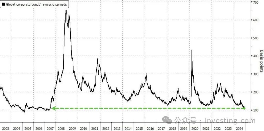 咱们也在持续神气收益率利差,此狡计仍接近“金融危急”以来的最低水平。此前,当收益率利差处于如斯低位时,意味着市集对金融市集景色过度乐不雅。刻下情况亦然,投资者风物为所承担的风险支付过高价钱。不幸的是,以往这种情况通常结局欠安,而收益率利差成为了投资者主动镌汰投资组合风险的伏击先行狡计。